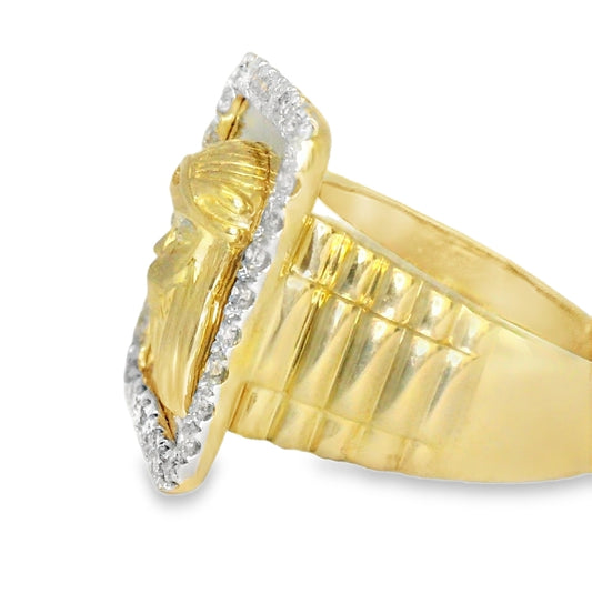 10K YELLOW GOLD 0.85CTW DIAMOND JESUS RING SIZE 10