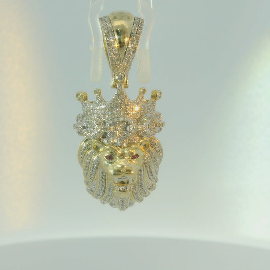 10K YELLOW GOLD LIONHEAD WITH CROWN ROUND DIAMOND CHARM 41.78MM LENGTH FROM BALE 18.26MM WIDTH FROM BALE