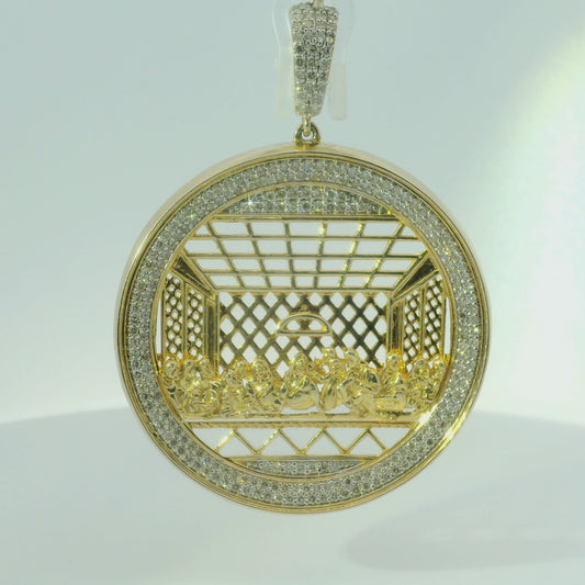 10K YELLOW GOLD DIAMOND LAST SUPPER CHARM 3.15CTW FAMILY