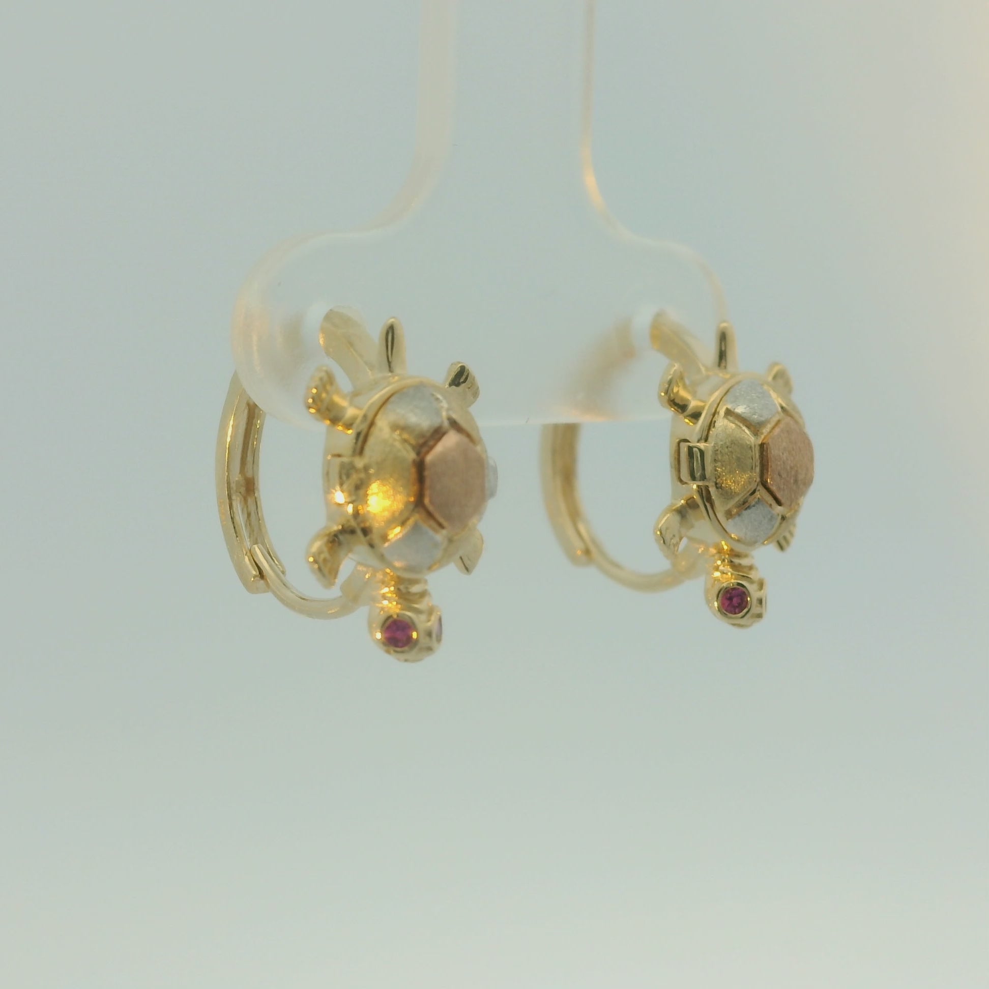 14K GOLD TRI COLOR TURTLE CZ EARRINGS