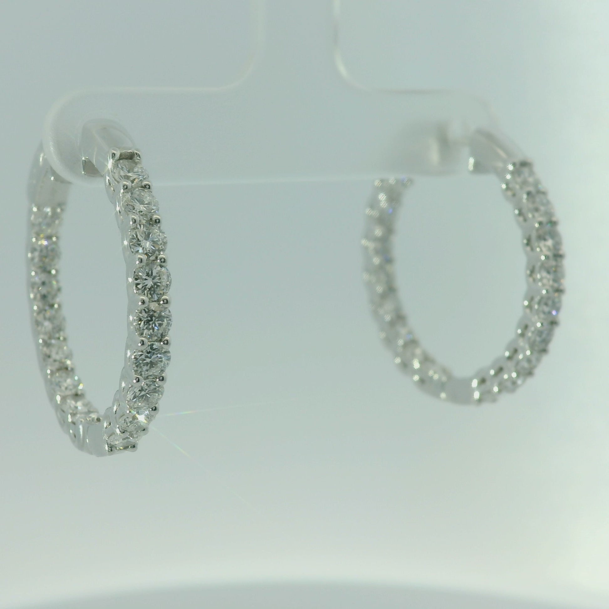 14K WHITE GOLD HOOP EARRINGS WITH ROUND LAB DIAMONDS