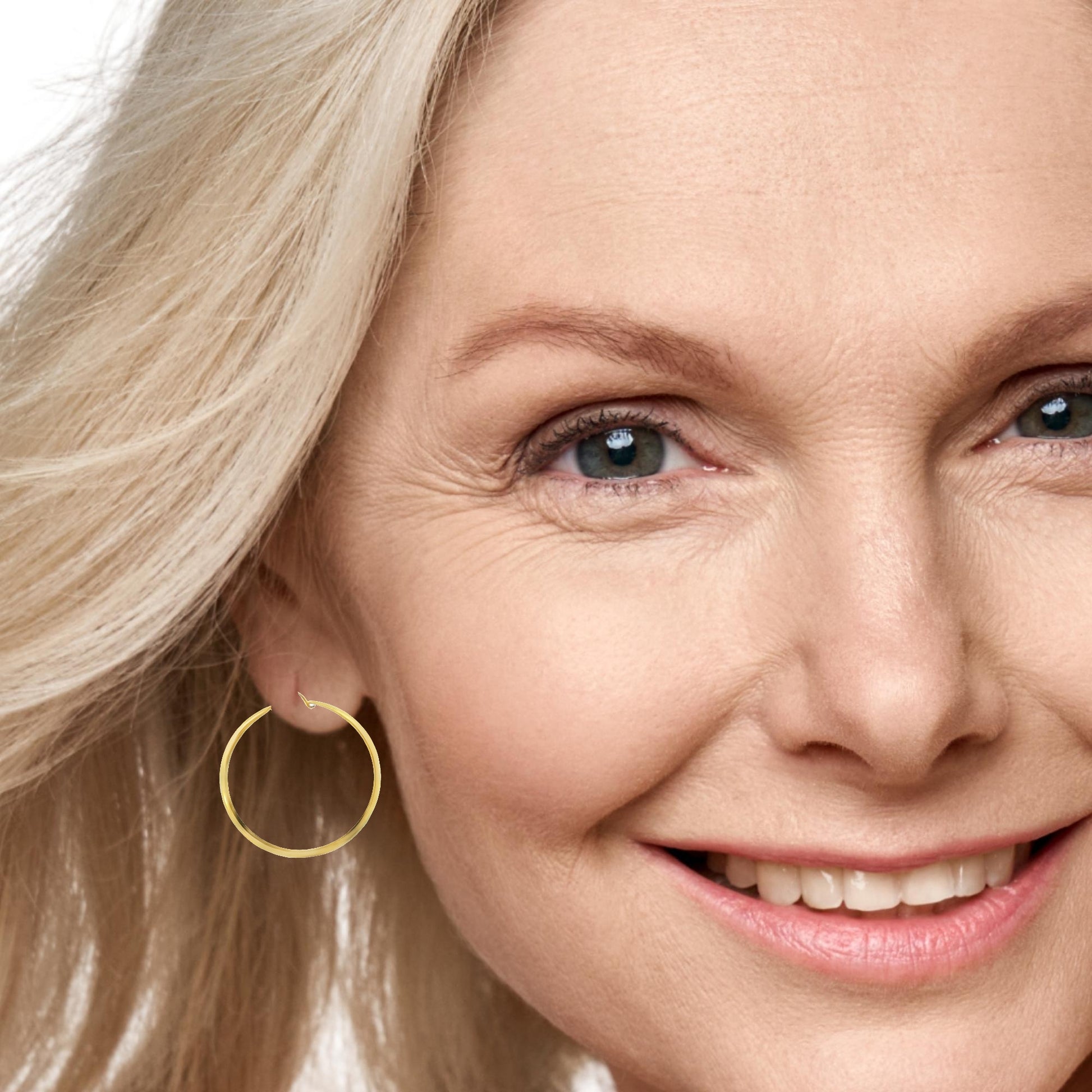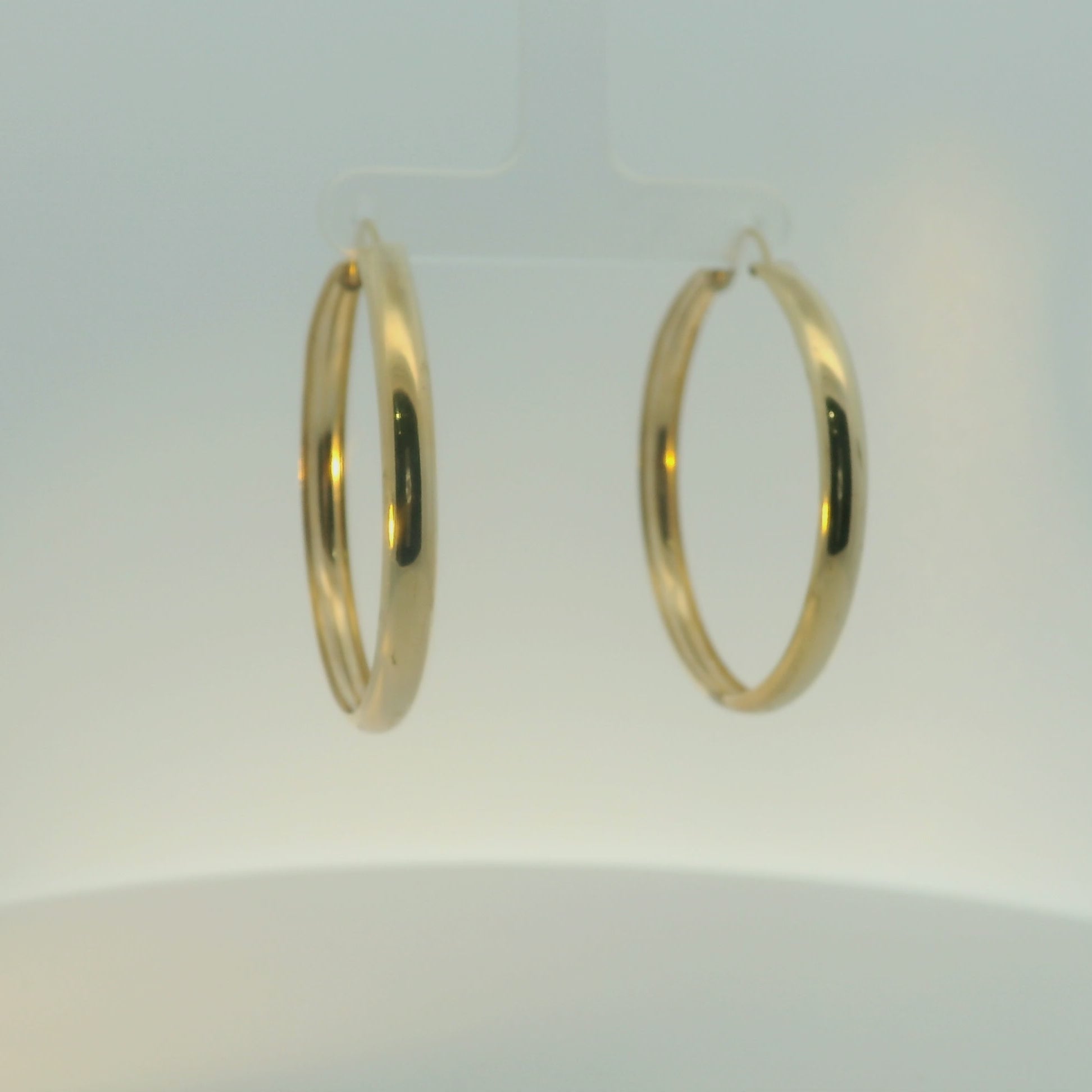 Timeless elegance meets everyday wearability with these classic 14K yellow gold hoop earrings. Crafted from genuine yellow gold, these versatile hoops complement any look—from casual outings to special occasions. Their smooth, polished finish catches the light beautifully, while the traditional design ensures they'll remain a cherished staple in your jewelry collection for years to come. Perfect for layering or wearing solo, these hoops are a wardrobe essential that transcends trends.