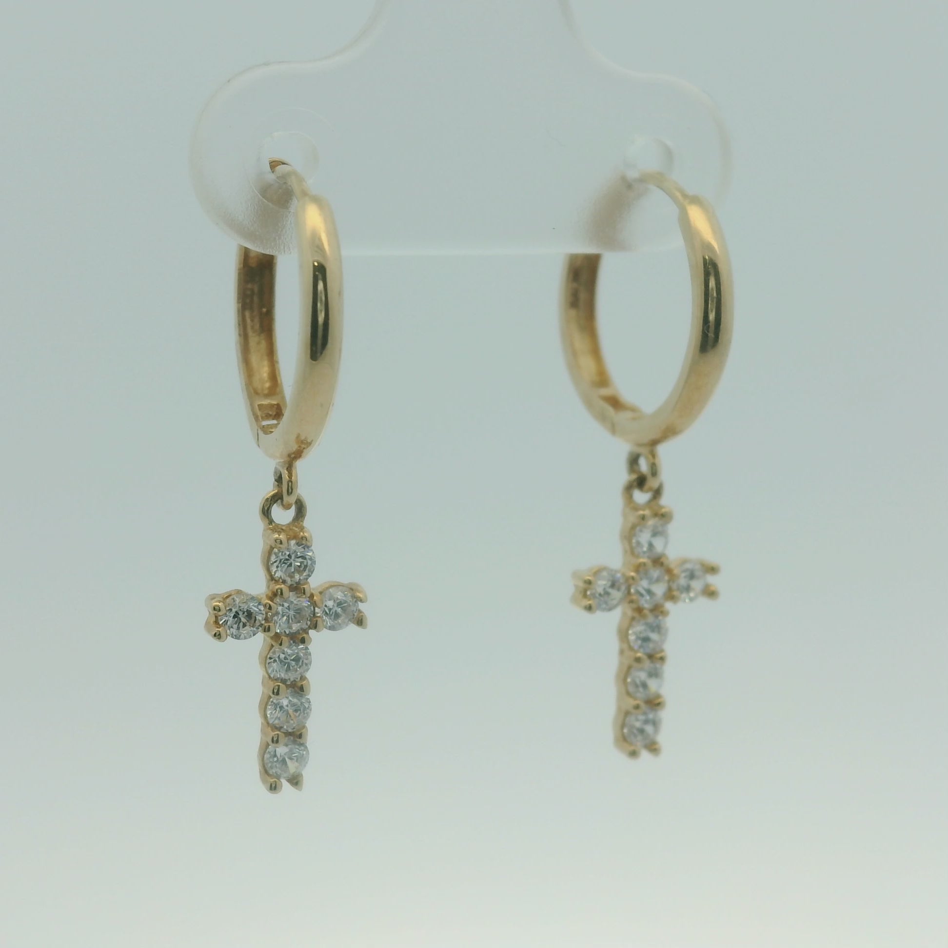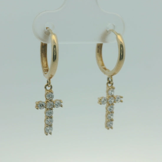 14K YELLOW GOLD DANGLE CROSS CZ HUGGIES