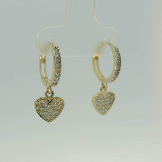 14K YELLOW GOLD HEART DANGLING HOOPS CZ