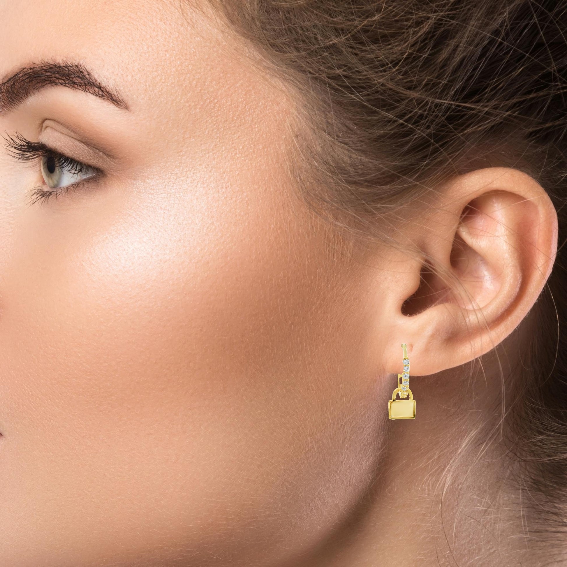 Elevate your everyday style with these stunning 14K yellow gold purse hoops adorned with sparkling cubic zirconia. The perfect blend of sophistication and playfulness, these hoops add a touch of glamour to any outfit while remaining versatile enough for both casual and formal occasions. Crafted in genuine 14K yellow gold, they offer lasting durability and timeless appeal. The brilliant CZ stones catch the light beautifully, creating an eye-catching sparkle that rivals fine diamonds. Whether you're dressing up for a special event or adding polish to your daily look, these purse hoops are a jewelry essential that celebrates your unique style.