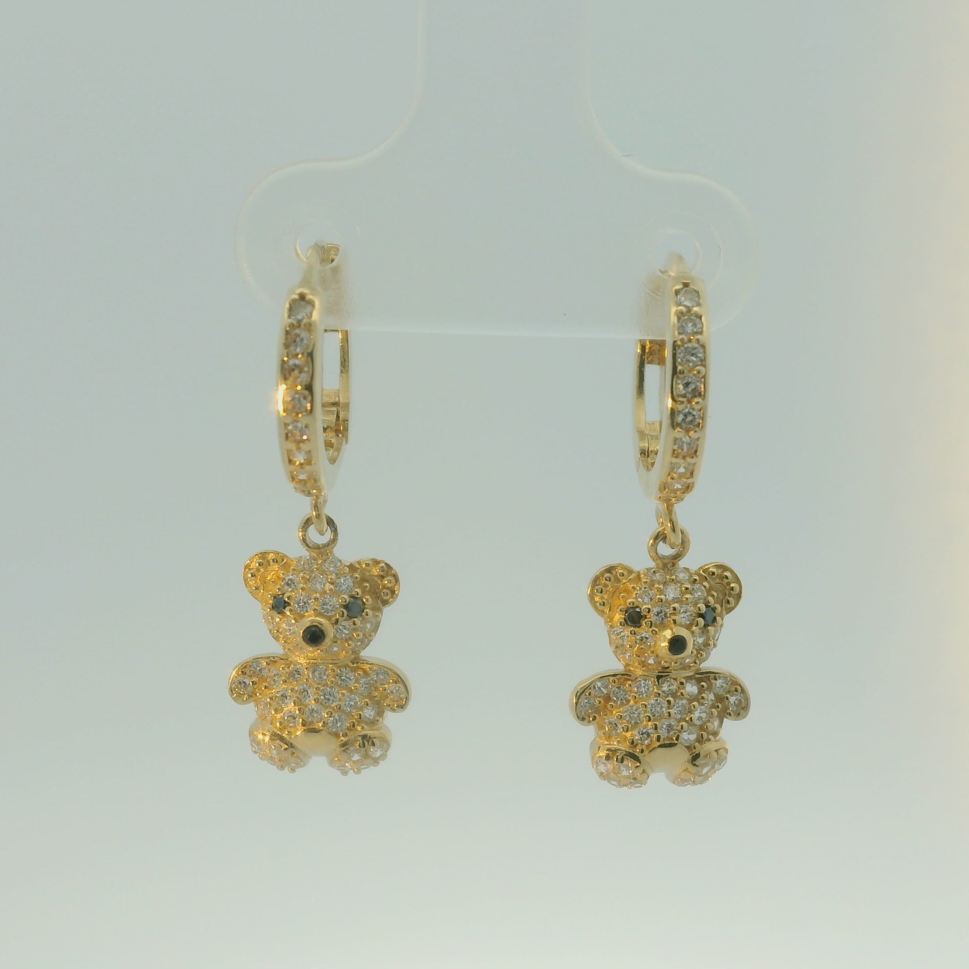 14K YELLOW GOLD TEDDY BEAR HOOPS CZ EARRINGS